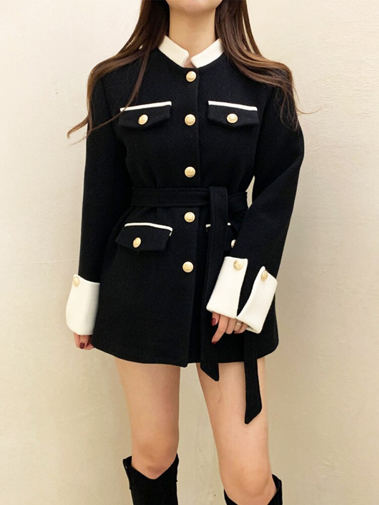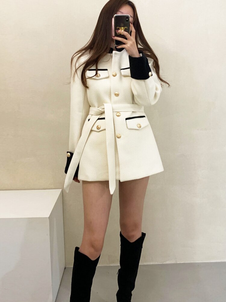 New style small fragrant wind tweed waistband celebrity thickened woolen overcoat woman