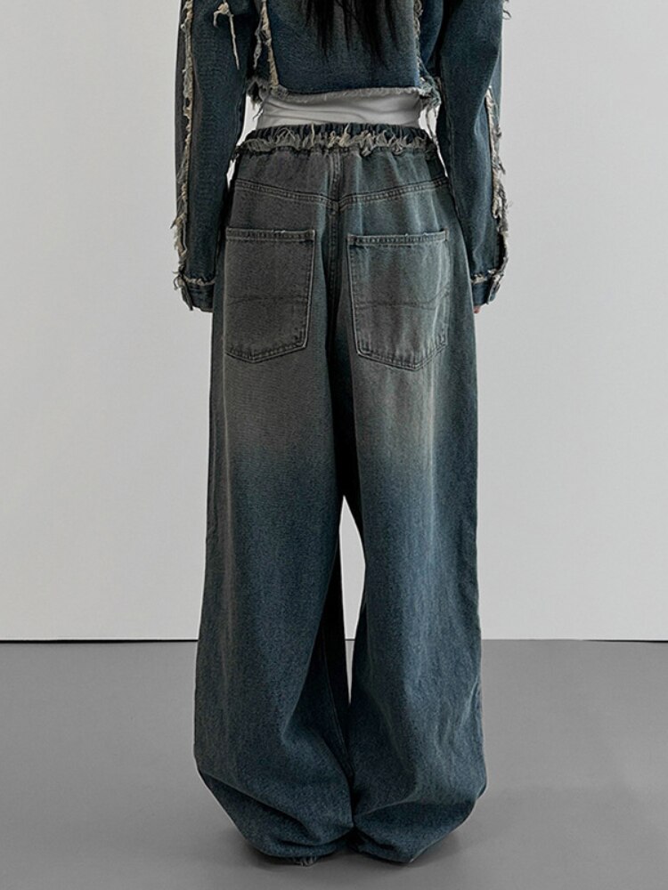 WeiYao Raw Edge Baggy Pants High Waisted Washed Wide Leg Jeans Vintage 90s Korean Fashion Streetwear y2k Women's Jeans Joggers